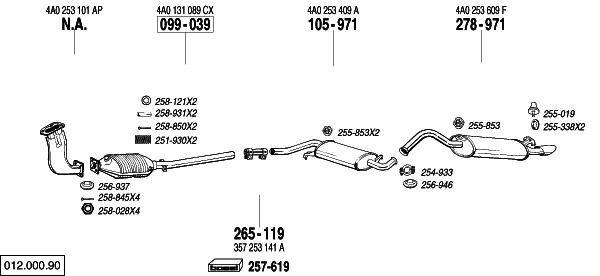 A61.8 -20V ![]() ![]() Sedan, Avant 10/95-10/97 1781 cc, 125 HP, 92 KW M° ADR Ch.nr. 4A-T-025000 Ch.nr.4A-V-120000 |