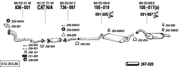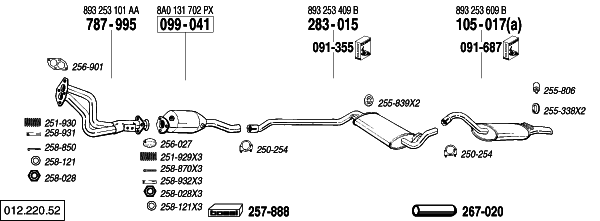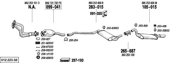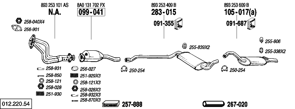 Coupe2.0 05/89-07/90 Man. 1984 cc, 115 HP, 85 KW M° 3A (a) shorten tailpipe(33mm) couper sortie(33mm) Endrohr absдgen(33mm) |