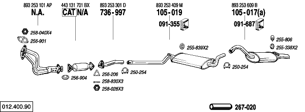 Coupe2.0 05/89-07/90 Aut. 1984 cc, 115 HP, 85 KW M° 3A (a) shorten tailpipe(33mm) couper sortie(33mm) Endrohr absдgen(33mm) |