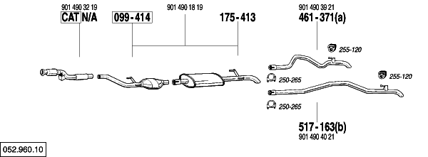 Sprinter 212D Turbo Diesel 02/95-04/00 2874 cc, 122 HP, 90 KW M° OM602 T° 901,902 (a) SWB, 3000 mm (b) LWB, 3550 mm (c) Repair Pipe |